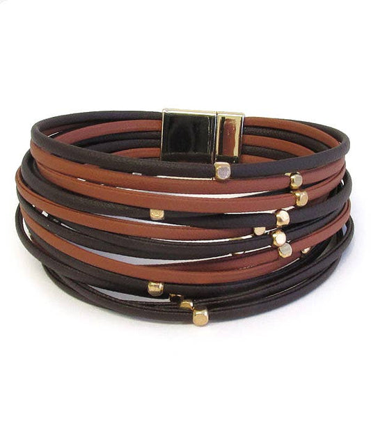 7" Leatherette Bracelet with Gold Accents – Magnetic Closure | Elegant & Modern for Women