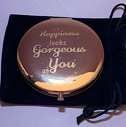 Rose Gold Compact Mirror with Crystals – “Happiness Looks Gorgeous on You”